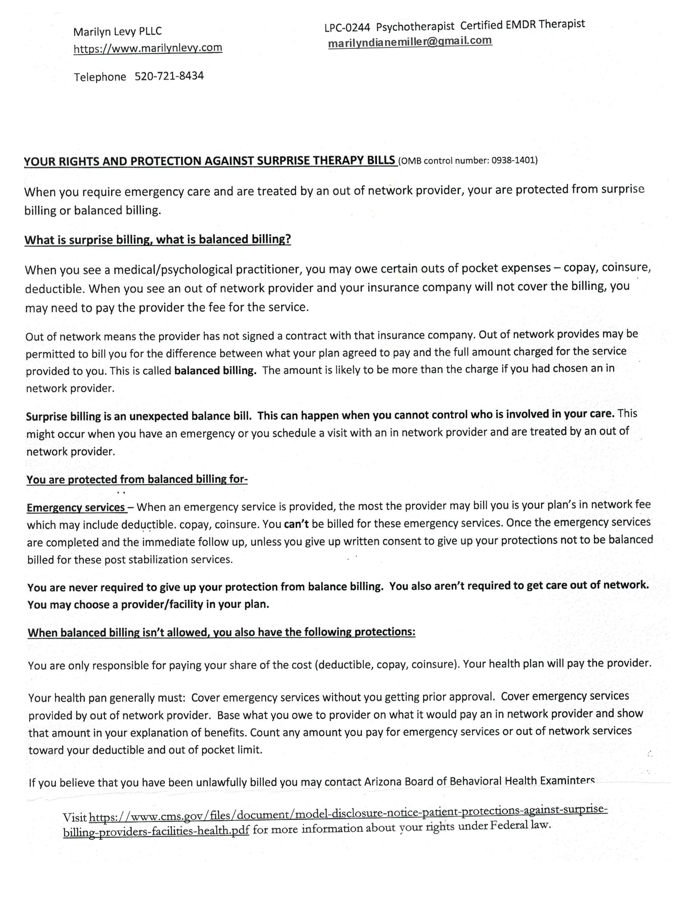 If you are a new client and No Surprise Billing applies to you, individual consent forms will be emailed to you prior to your first appointment.
